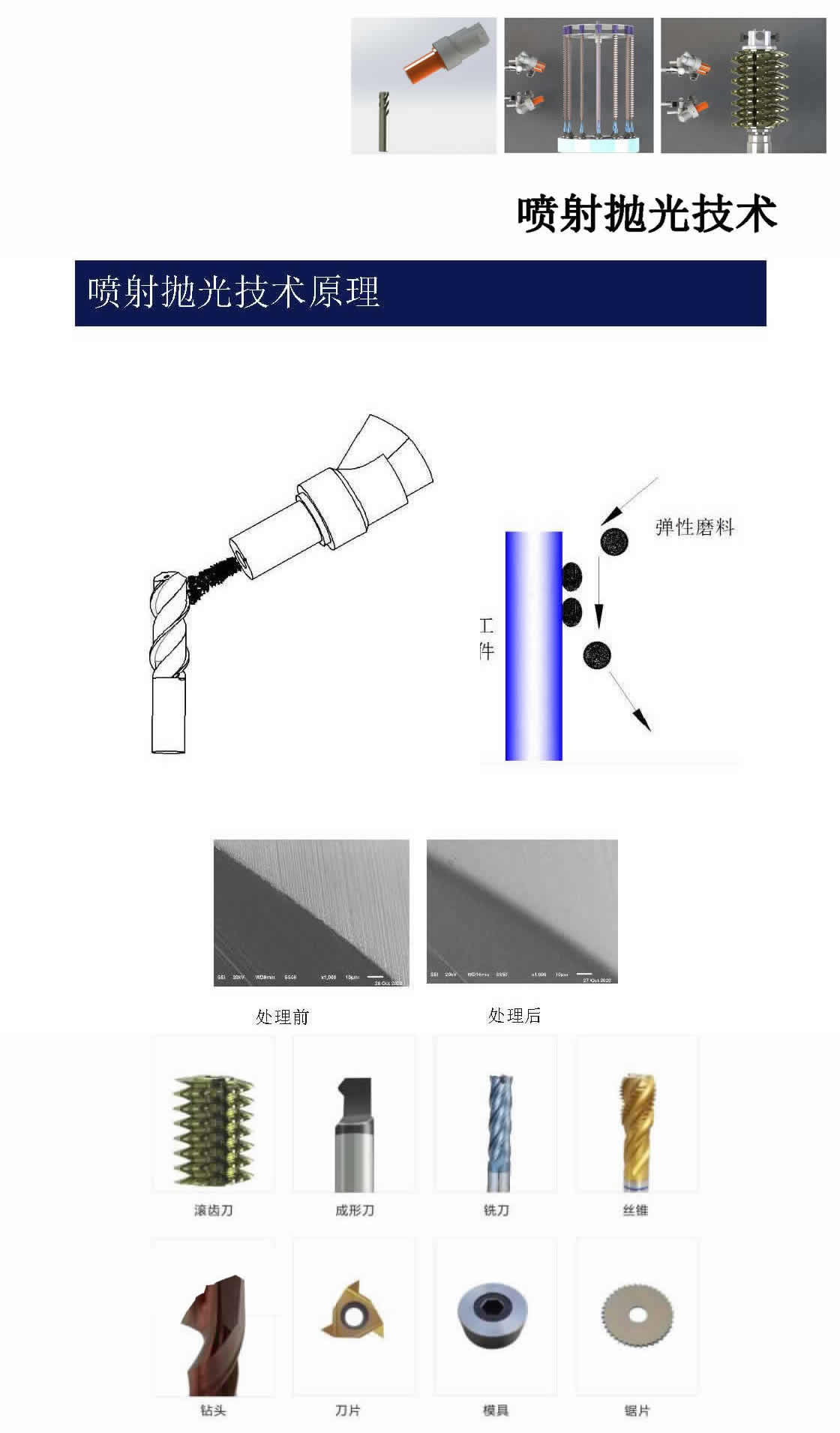 用于各種硬質(zhì)合金刀具、鉆頭、刀片刃口鈍化及拋光處理,涂層后拋光去除液滴、模具拋光、各種結(jié)構(gòu)復(fù)雜表面光潔度要求高的精密零件拋光。